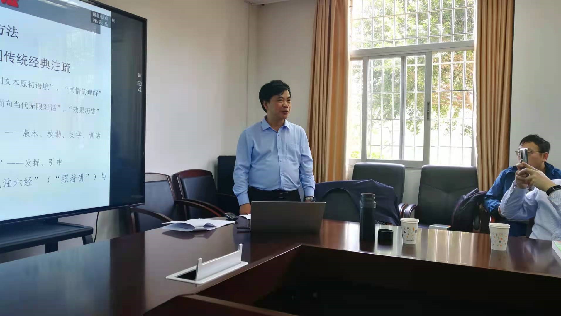 4月30日上午,北大哲学系杨学功教授应邀来我系做了一场《如何理解爱因斯坦的“宗教感情”》的学术报告,报告会由朱菁院长主持,马克思主义哲学教研室徐梦秋教授、林育川教授、杨松教授、郭伟峰助理教授,外国哲学教研室翁少龙助理教授,以及哲学系和马克思主义学院诸多研究生和本科生参加了本次报告会。