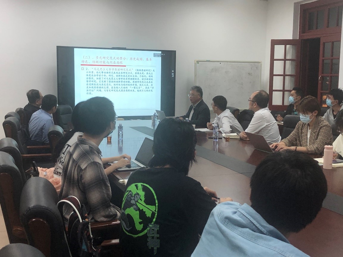 讲座伊始,任平教授从语义上梳理了“中国马克思主义”的基本内涵,并追问了“中国马克思主义”出场的可能性。任平教授指出,“中国马克思主义哲学”不同于“马克思主义哲学中国化”。“中国马克思主义哲学”是从“世界走向中国”到“中国走向世界”这一时代大转换的产物,是“中国走向世界”的时代背景下,中国学术走向世界的一面旗帜。我们今天不仅仅马克思主义哲学的学徒,还要成为马克思主义哲学的续作者。因此,反思“中国马克思主义哲学”何以可能出场,研究“中国马克思主义哲学”的当代出场路径,具有重要意义。