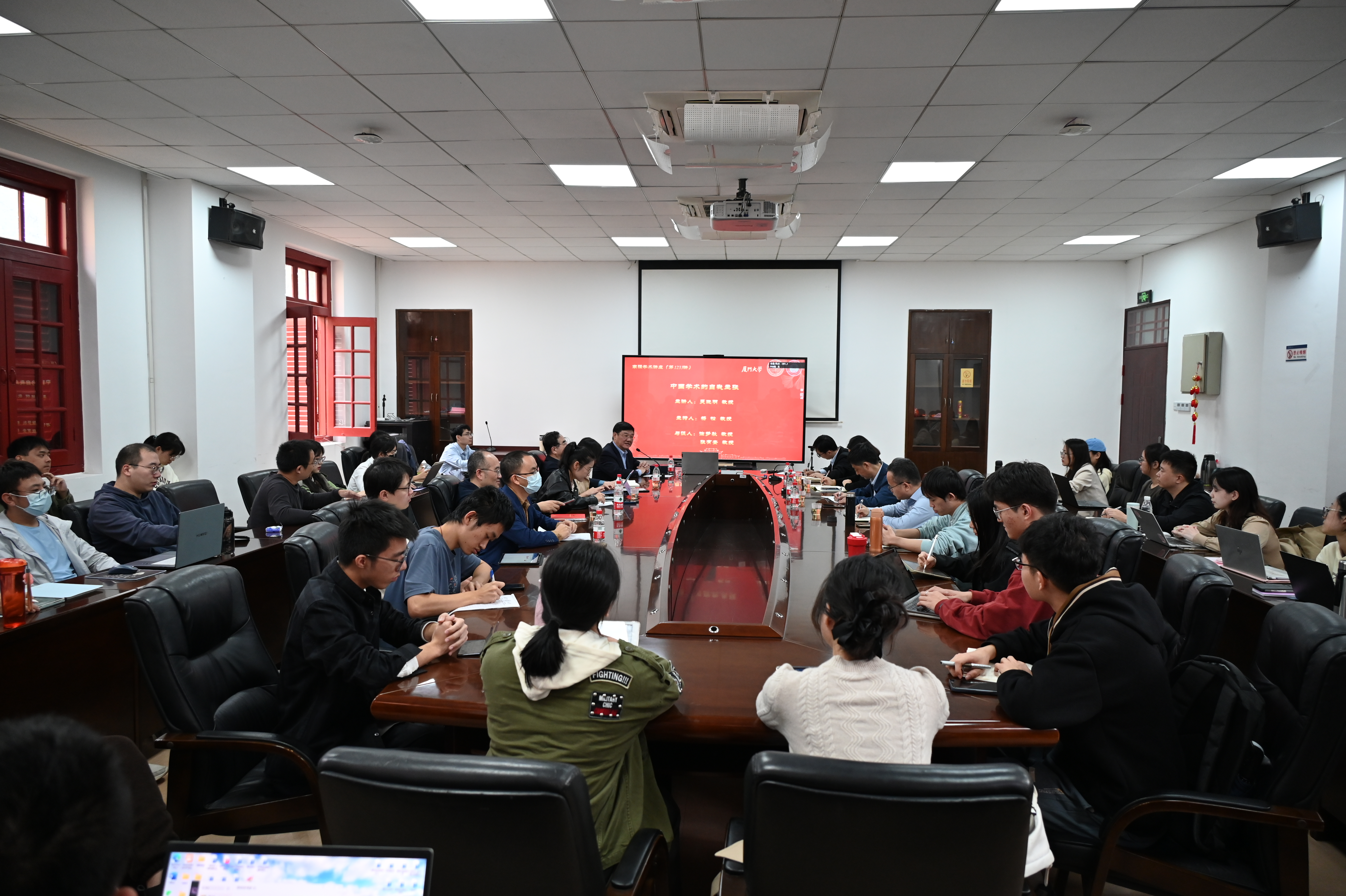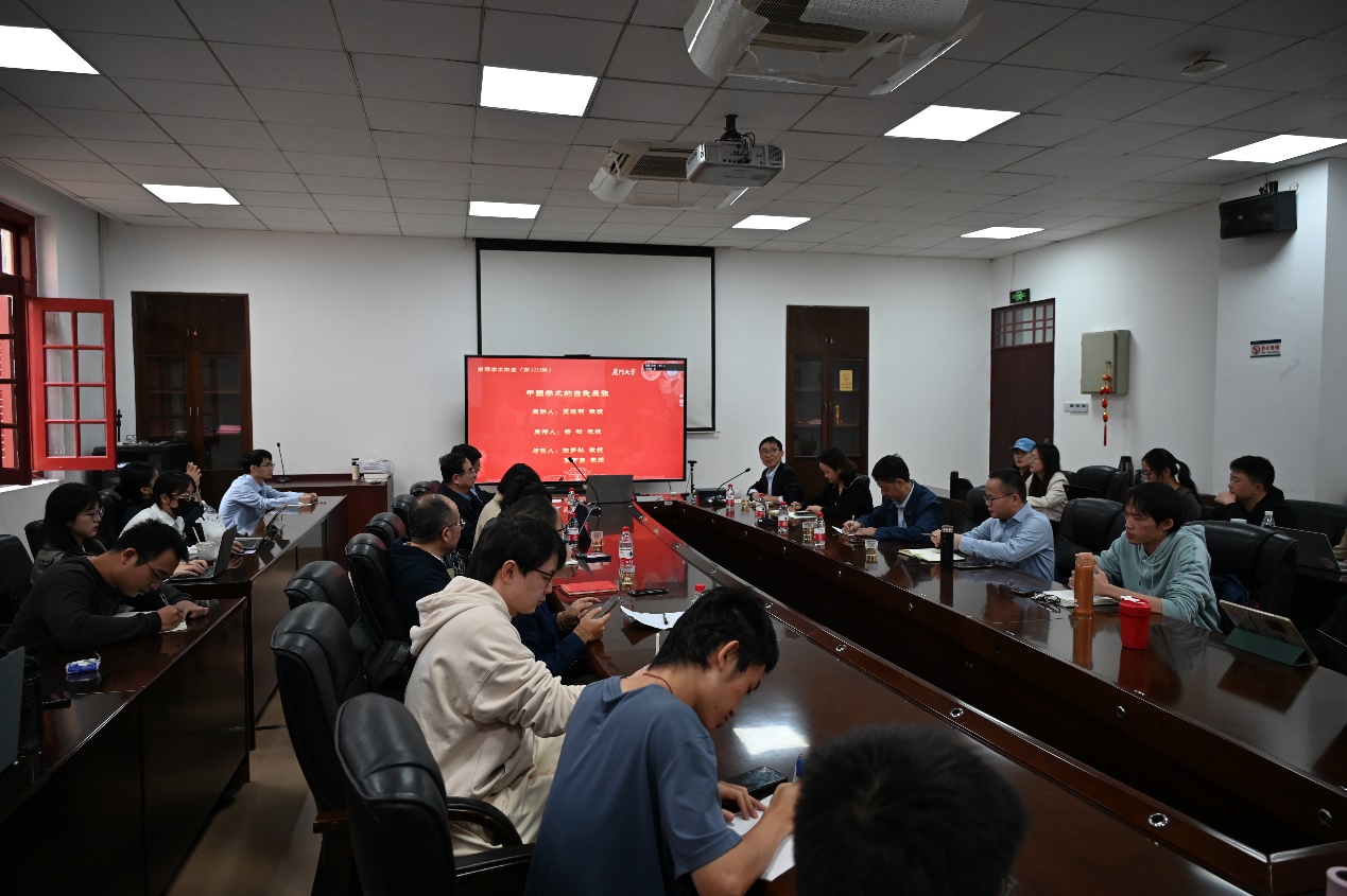 2023年12月3日下午3:00-5:00,厦门大学南强学术讲座第1233讲在厦门大学南光一320会议室举行。本次讲座的主讲人为教育部长江学者特聘教授、复旦大学文科资深教授吴晓明,他讲授的题目是《中国学术的自我主张》。厦门大学哲学系党委书记杨松教授主持了本次讲座。